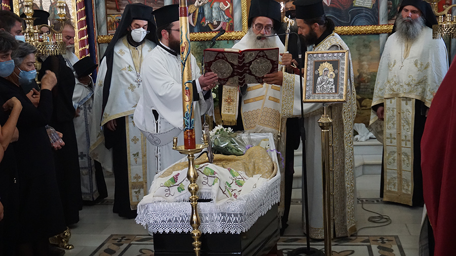 Από την εξόδιο ακολουθία του π. Νικολάου Καλαϊτζάκη, Εφημερίου Πλουτής, στον Α. Ζαρό, 15/7/2021.