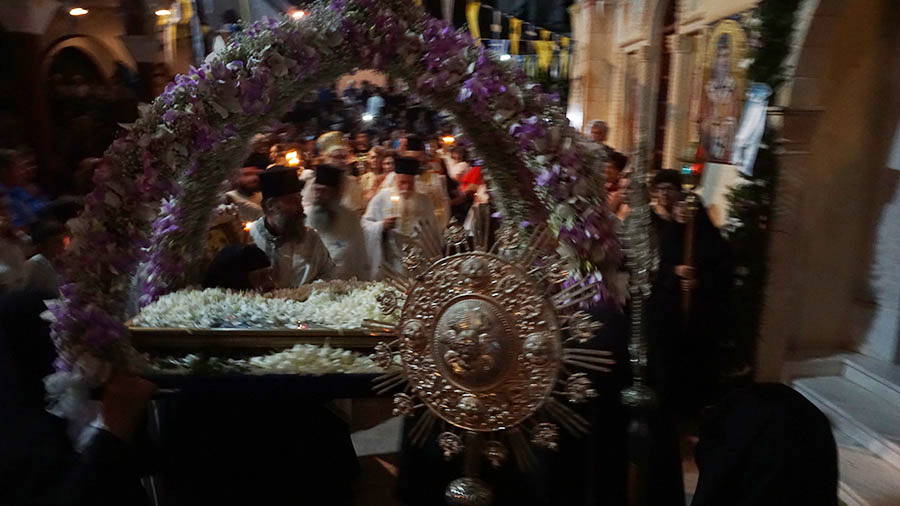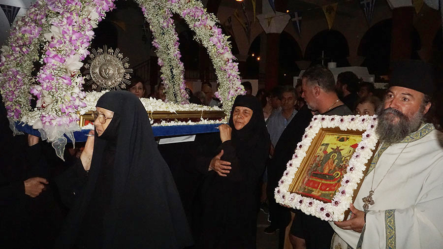 Από τον Εσπερινό της εορτής της Κοιμήσεως της Θεοτόκου, στην Ι. Μονή Παναγίας Καλυβιανής, 14-8-2018. 2018-08-15 imga