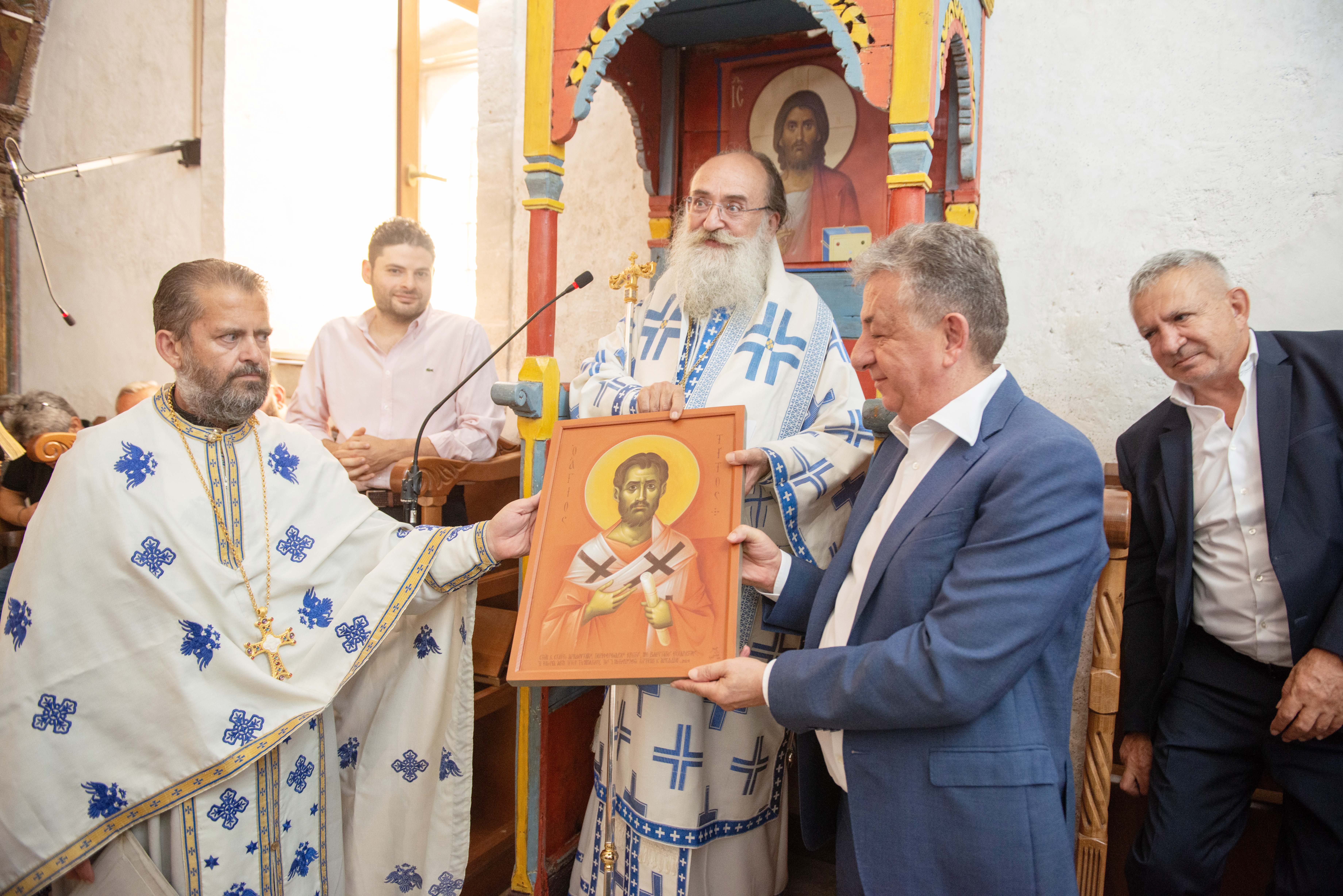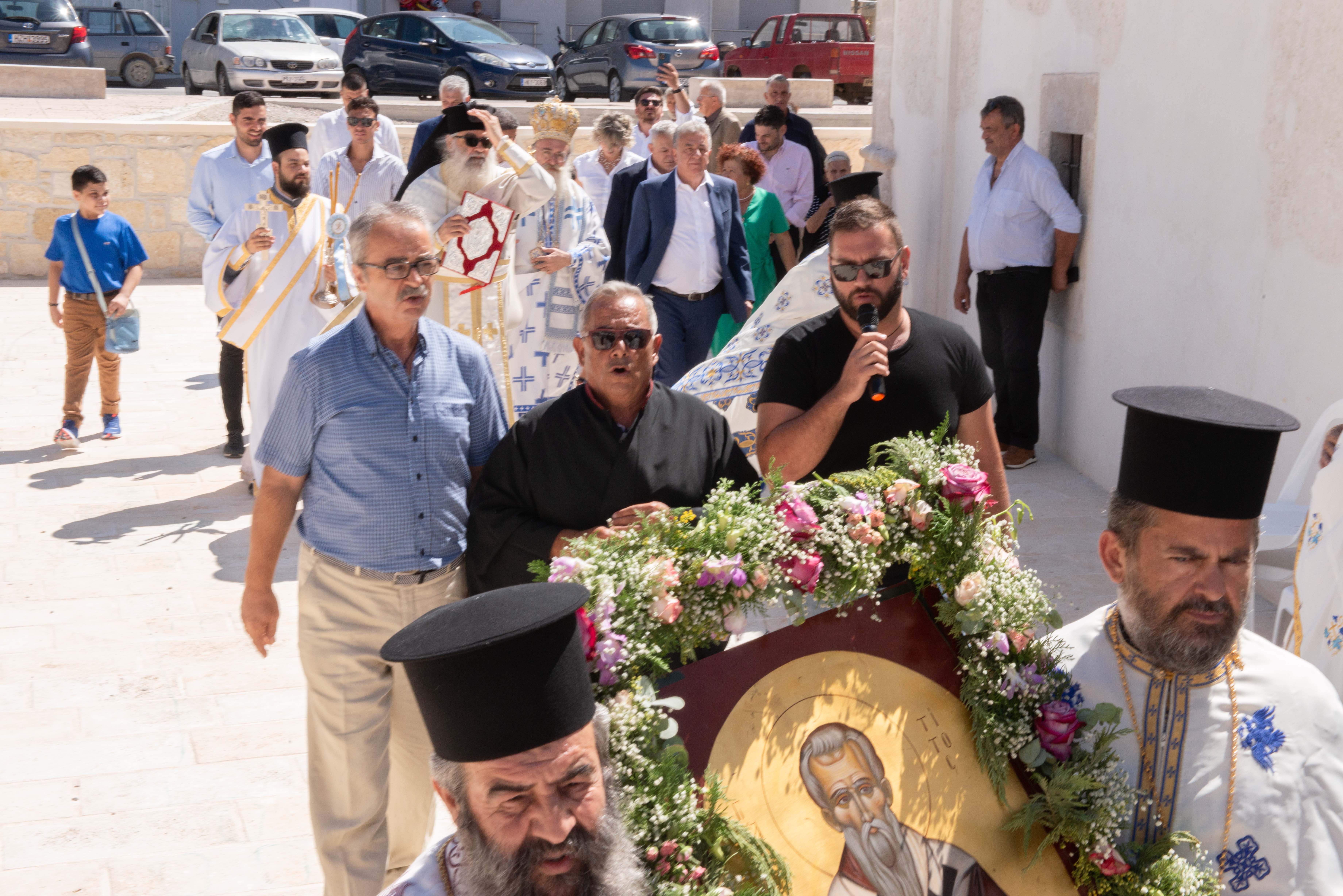 25/8/2024, ἑορτή τοῦ Ἁγ. Τίτου, τέλεση, κατά τή Θ. Λειτουργία, τῆς ἱ. ἁκολουθίας τῆς ἐκπλύσεως τῶν Ἁγίων Τραπεζῶν, ἀπό τόν Σεβ. Μητροπολίτη Γορτύνης καί Ἀρκαδίας κ. Μακάριο καί παράδοση τοῦ ἀνακαινισμένου Ἱ. Ναοῦ στή θεία λατρεία.