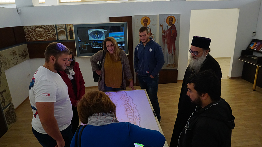 Επίσκεψη Ομάδας της Γεωργικής Σχολής Μεσαράς, στο Κέντρο Τουριστικής Πληροφόρησης Μεσαράς που λειτουργεί το Πολιτιστικό Κέντρο της Ι. Μητροπόλεώς μας, στην αίθουσα του Ι. Κ. Ν. Αγ. Νεκταρίου Μοιρών, (5/12/2019).