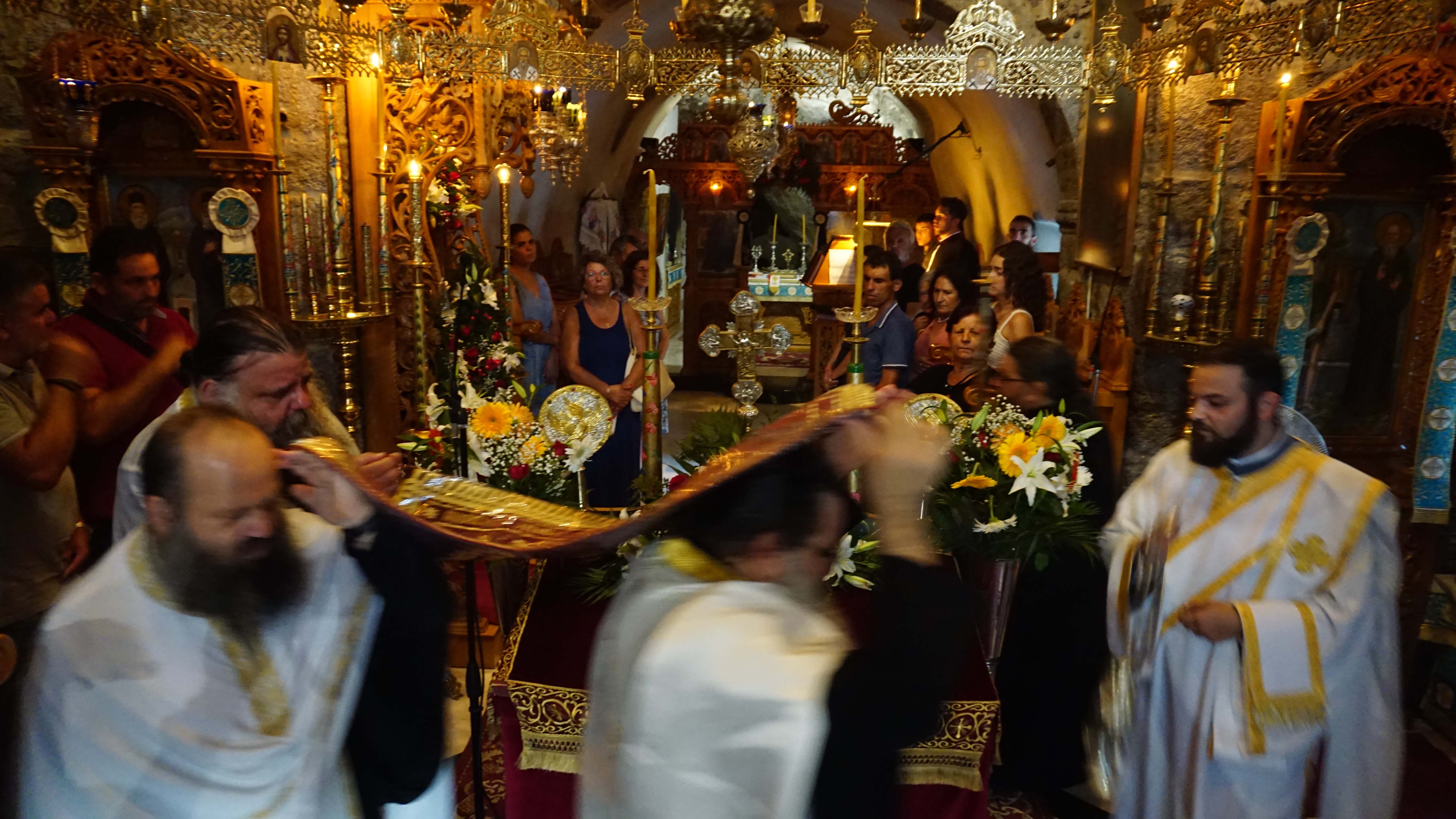 Εσπερινός Κοιμήσεως της Θεοτόκου, στην εορτάζουσα Ι. Μονή Κουδουμά, 14/8/2024.