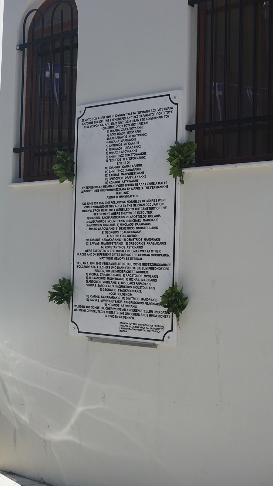 Κυριακή 3/6/2018, Ι. Μ. Ναός Αγ. Γεωργίου Μοιρών. Μνήμη ἐκτελεσθέντων, κατὰ τὴ γερμανική κατοχή, 1η Ἰουνίου 1942.