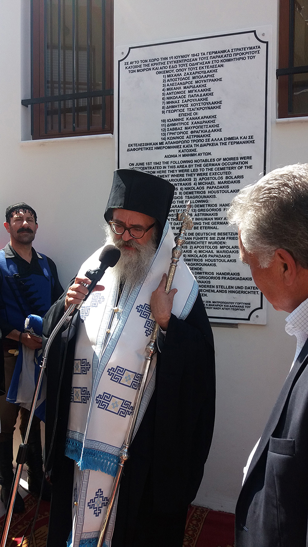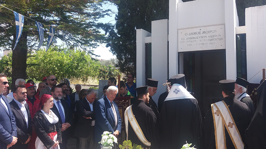 Tὴν Κυριακὴ τῆς Πεντηκοστῆς, 4 Ἰουνίου 2017, στὸν Ι. Μ. Ναὸ Ἁγ. Γεωργίου Μοιρῶν ἱερούργησε ὁ Σεβ. Ποιμενάρχης μας κ. Μακάριος καί τέλεσε τό μνημόσυνο, ἐκτελεσθέντων ἀπὸ τὰ γερμανικά στρατεύματα κατοχῆς, τὴν 1η Ἰουνίου 1942.