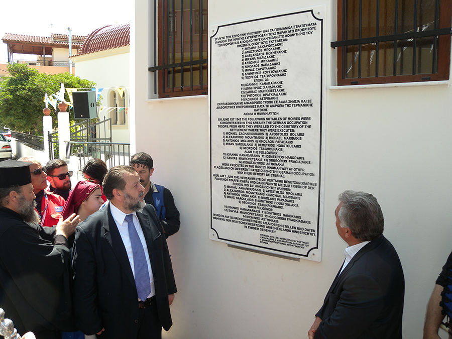 Μνήμη ἐκτελεσθέντων, κατὰ τὴ γερμανική κατοχή, τήν 1η Ἰουνίου 1942, ἀποκάλυψη τιμητικῆς πλάκας γι᾽ αὐτούς, στόν Ἱ. Μ. Ναό Ἁγ. Γεωργίου Μοιρῶν, Κυριακή τῆς Πεντηκοστῆς, 4-6-2017.