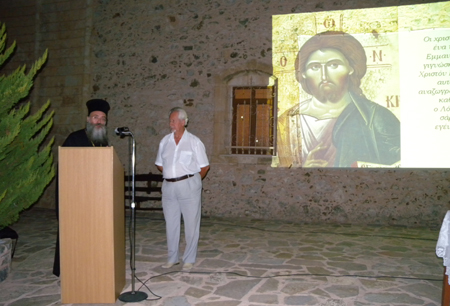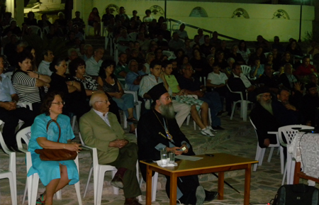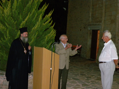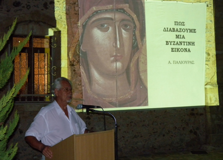 Από την ομιλία του κ. Αθανασίου Παλιούρα, Καθηγητού Πανεπιστημίου, στο Χάρακα, για το νόημα των Ι. Εικόνων, διακρίνεται ο καθηγητής Antonino Di Vita. 4-9-2011