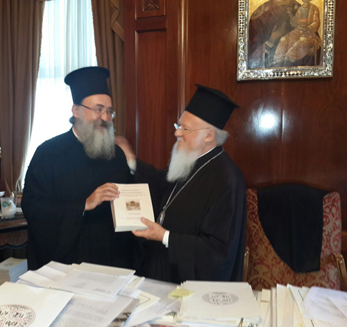 Ο τόμος των πρακτικών του 1ου Διεθνούς Διεπιστημονικού Συνεδρίου Γόρτυνας, στον Οικουμενικό Πατριάρχη κ. κ. Βαρθολομαίο
