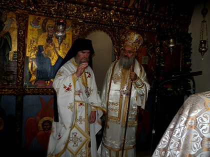 Εις την Θ. Λειτουργίαν έλαβε μέρος ο Πανοσ. Αρχιμ. Πρόδρομος Καθηγούμενος της Ι. Μονής Μεγίστης Λαύρας του Αγ. Όρους, όστις μετέφερεν εις πάντας την ευλογίαν της Υπεραγίας Θεοτόκου εκ του Αγ. Όρους.