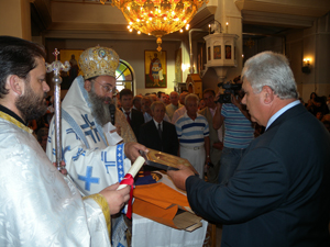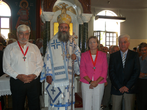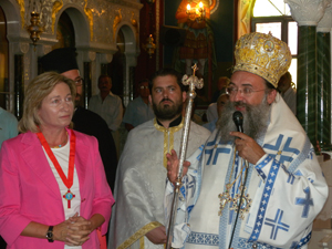 Ωσαύτως απένειμε τον Σταυρόν των Αγ. Αποστόλων Παύλου και Τίτου της Ι. Επαρχιακής Συνόδου της Εκκλησίας Κρήτης, μετά σχετικού παπύρου, εις την κ. Ευαγγελίαν Σχοιναράκη, Νομάρχην Ηρακλείου, δια την, επί Αρχιερατείας του μακαριστού Μητροπολίτου Γορτύνης και Αρκαδίας κυρού Κυρίλλου, διαμεσολάβησιν αυτής δια την εξασφάλισιν 120.000 €, άτινα εχρησιμοποιήθησαν προσφάτως δια την ανέγερσιν του Πολιτιστικού – Πνευματικού Κέντρου και του Επικοινωνιακού και Μορφωτικού Ιδρύματος της Ι. Μητροπόλεως ως και δια την εν γένει συμπαράστασιν αυτής προς την Ι. Μητρόπολιν.