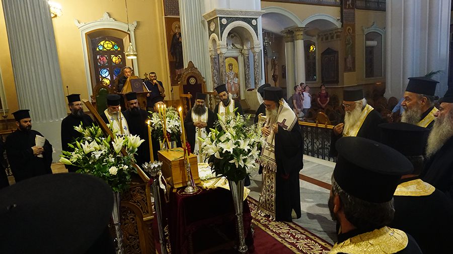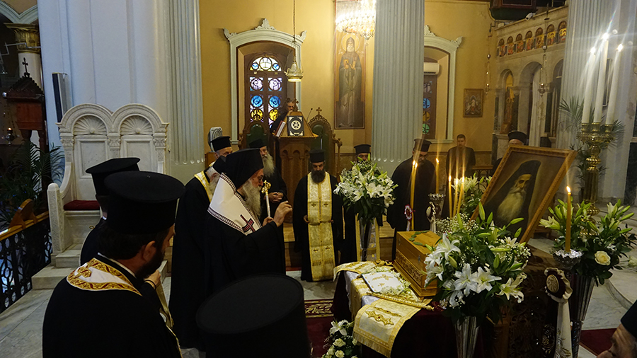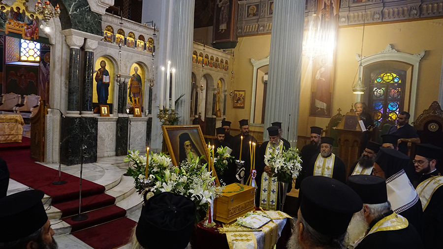 Τέλεση Τρισαγίου, στόν Ἱ. Μ. Ν. Ἁγ. Μηνᾶ Ἡρακλείου, ἐπί τῶν ὀστῶν τοῦ, ἀπό Ἀρκαδίας, Μητροπολίτου Κρήτης Βασιλείου Μαρκάκη, 29/6/2019, κατά τίς 3/μερες ἐκδηλώσεις µνήµης καί εὐγνωµοσύνης γιά αὐτόν, ἀπό τήν Ἱ. Μητρόπολή μας.