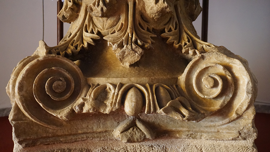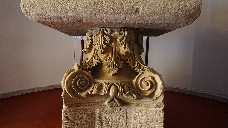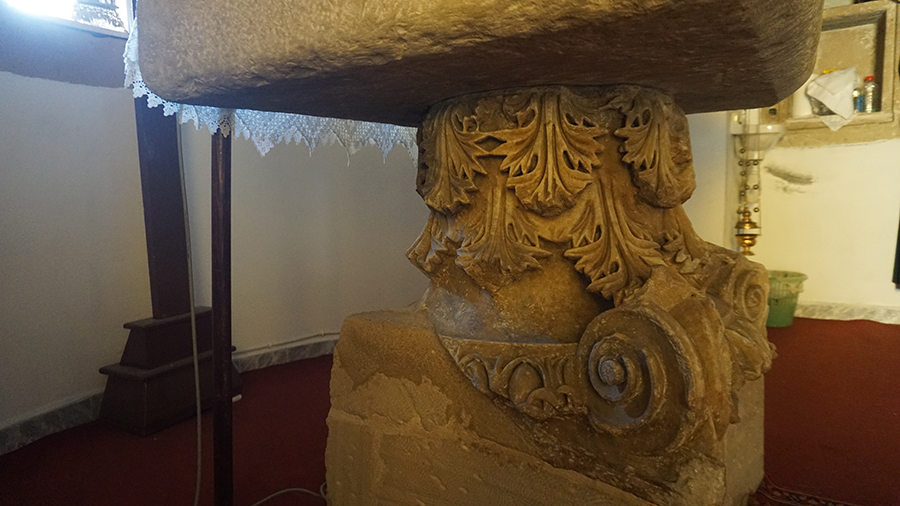 Το κιονόκρανο που βρίσκεται ως βάση της Αγ. Τραπέζης του Ι. Ναού του Ευαγγελισμού της Θεοτόκου